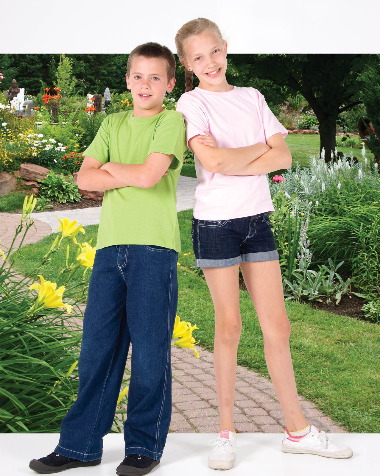 Neck ribbing, side seamed, shoulder to shoulder tape, double needle hems, preshrunk to minimise shrinkage