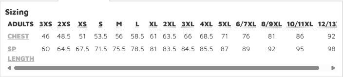 | Chest (cm) | 48.5 | 51 | 53.5 | 56 | 58.5 | 61 | 63.5 | 66 | 68.5 | 71 | 76 | 81 | 86 | |